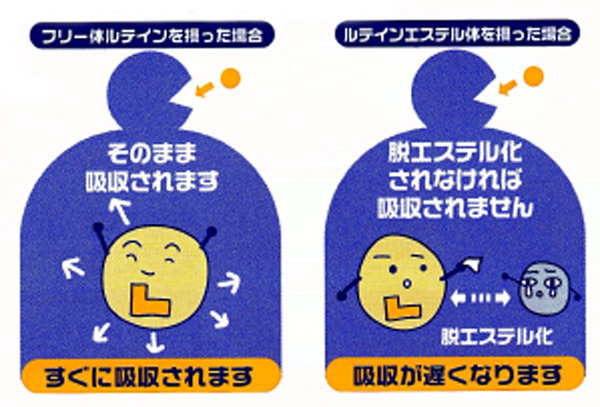 そのうちフリー体ルテインはエステル体に比べスムーズに吸収される特徴があり、薬理学的に実証を重ねる今注目の成分です。
